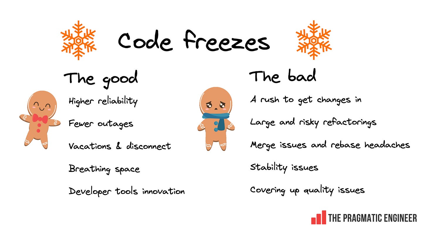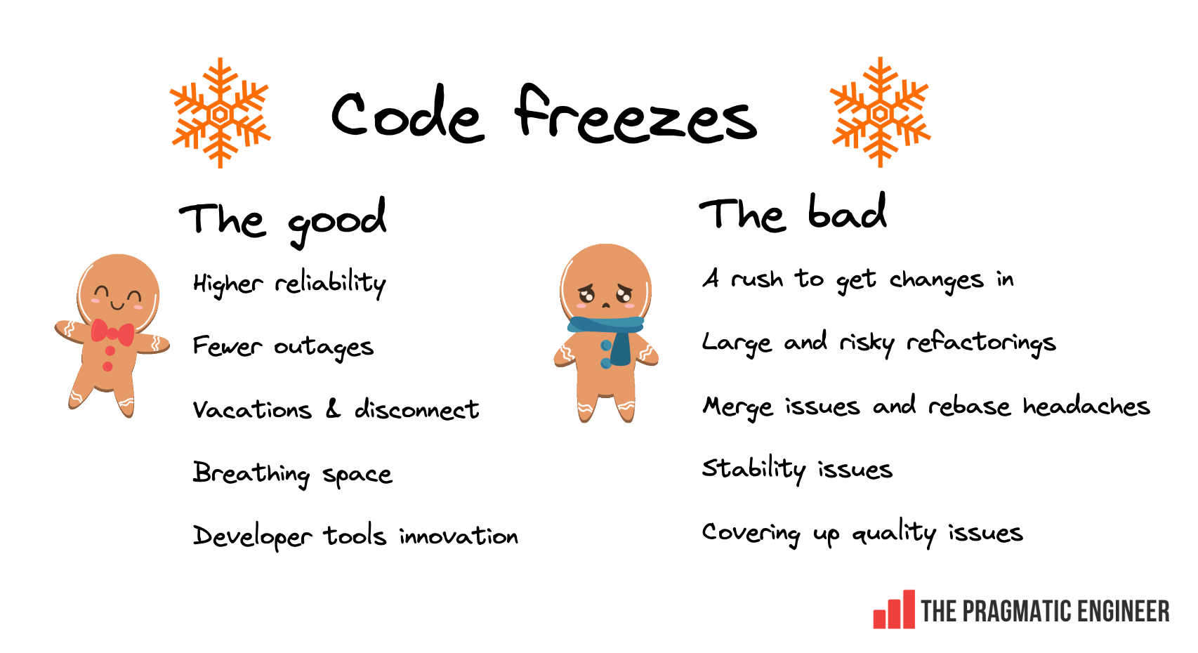 At the end of last year, code deployments were frozen at many tech companies. Why was this done, what are the benefits, and what are the tradeoffs of this approach?