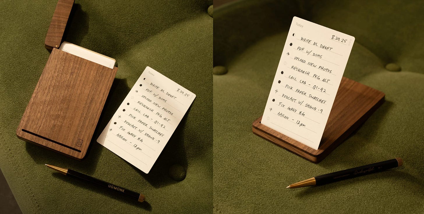 Stone paper notebooks. Stone paper is a tea-proof and waterproof sheet – which makes this format really practical. Some people love the feel of writing in them and others don’t, but you won’t know until you try! Popular brands include Moyu (erasable notebooks), Daily Bliss, and Karst Goods.