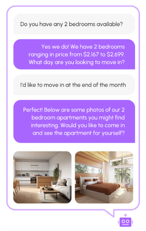 I recently worked with NurtureBoss, an AI startup building a leasing assistant for apartment property managers. The assistant helps with tour scheduling, answers routine tenant questions, and inbound sales. Here is a screenshot of how the product appears to customers: