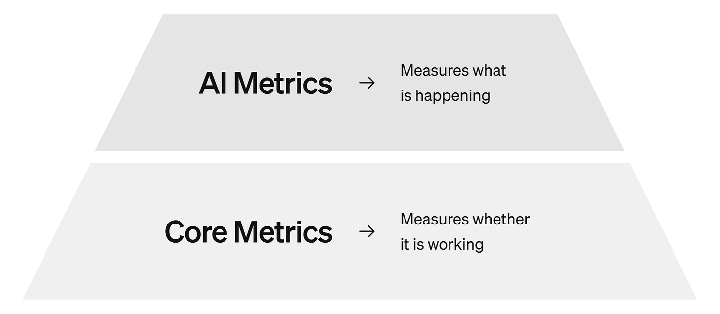 Solid foundations matter for measuring AI impact. You can – and should! – use existing “core” metrics, together with AI-specific ones like customer satisfaction (CSAT) scores.