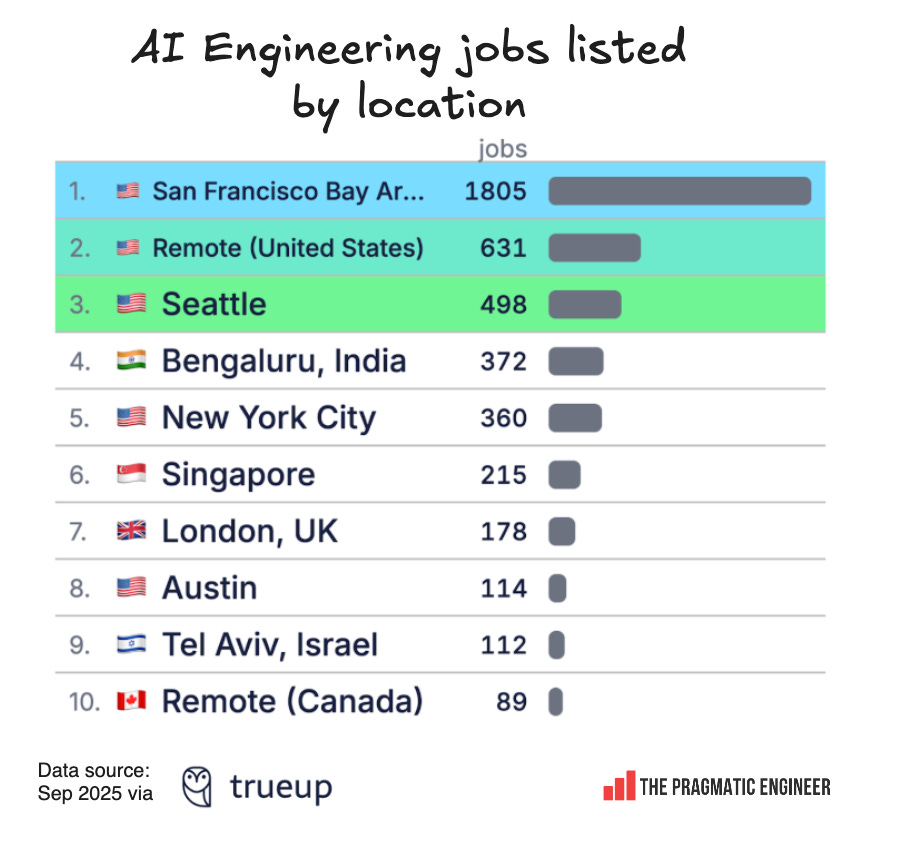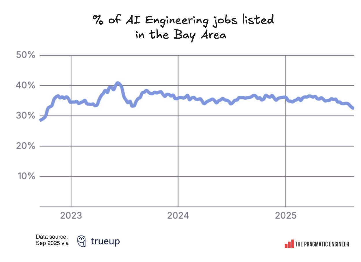 Most AI engineering jobs are listed for the Bay Area, in the US, and it’s not even close: