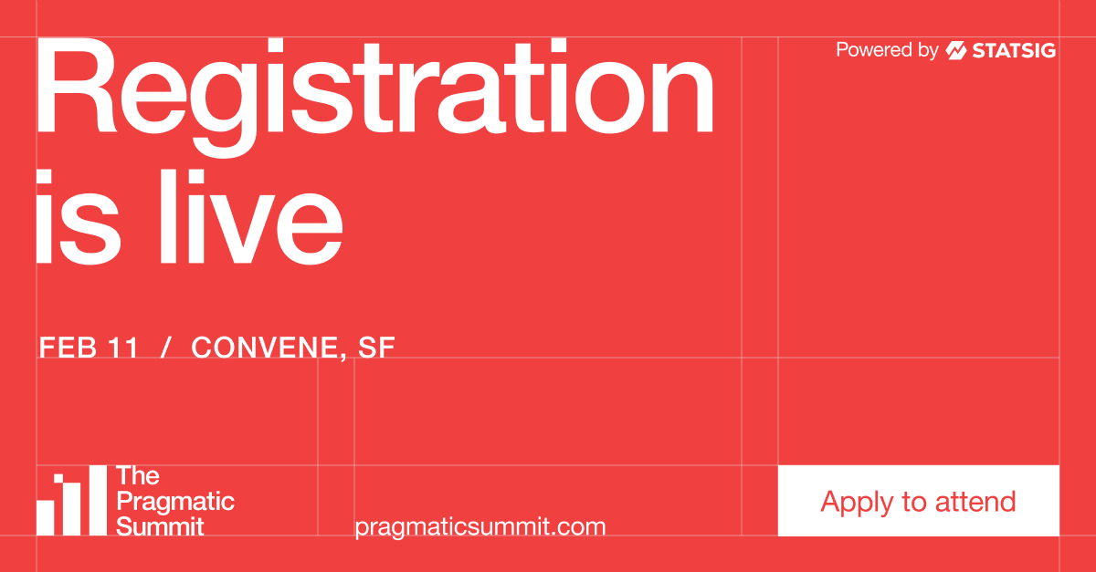 In partnership with Statsig, I’m hosting the first-ever Pragmatic Summit. Seats are limited, and tickets are priced at $499, covering the venue, meals, and production—we’re not aiming to make any profit from this event.